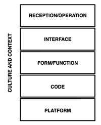 平台(Platform)则专注于代码下的抽象层。如果说代码研究是新媒体之于软件工程和计算机编程的类比,那么平台研究就是之于计算系统和计算机架构的(代码研究的)版本。